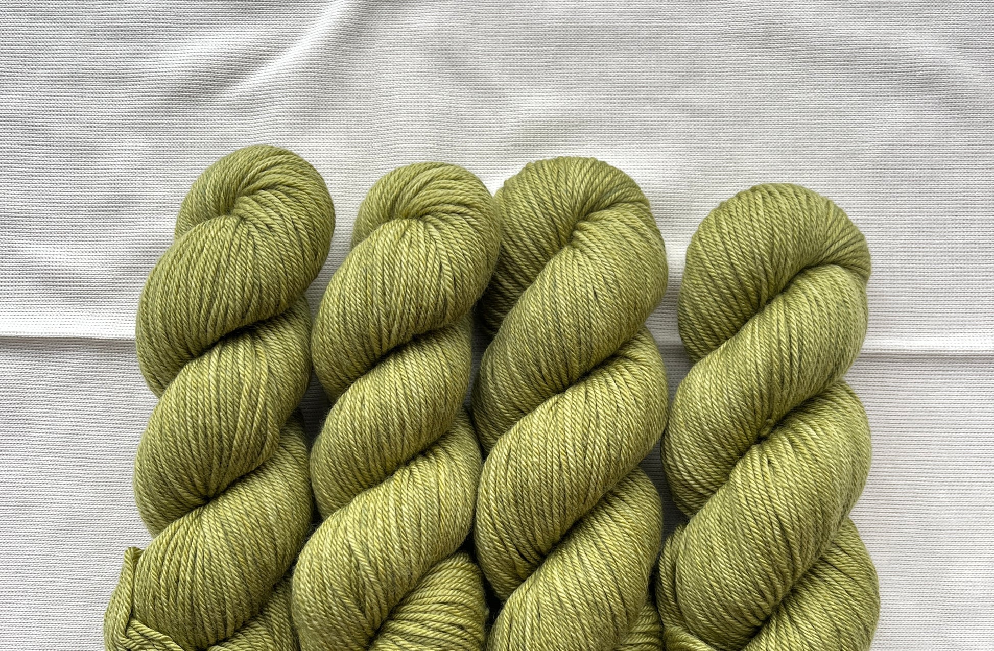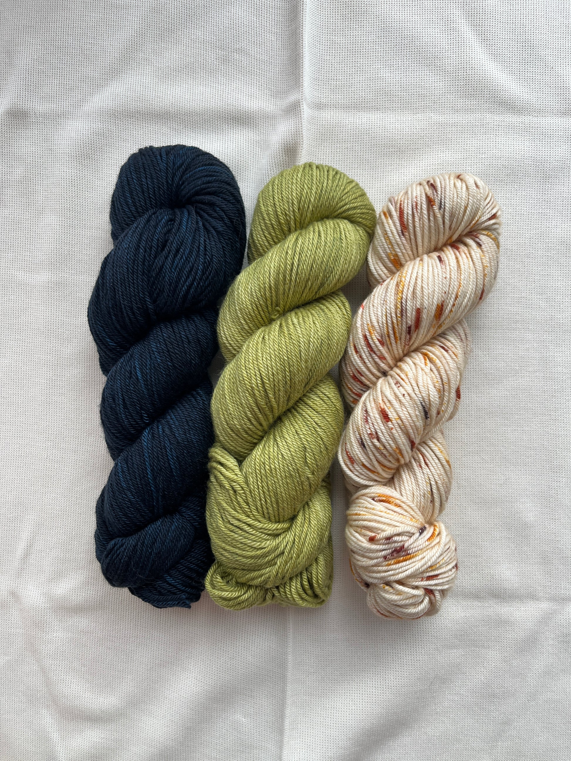 Our yarn is 100% Merino wool. The machine-dyed process creates variations in color.